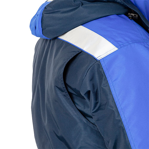 سحّاب مركزي مزدوج وزر تغطية محمي بأزرار ضغط. ياقة القبة معزولة بفليس عالي الجودة (مصنوع في إسبانيا). غطاء معزول قابل للفصل بسحّاب، قابل للتعديل عند فتحة الوجه. أكمام مخيطة تسمح بحرية حركة الذراعين؛ كفة مضلعة من الداخل. ظهر مطوي وشريط مرن على الخصر لحركة حرة. الجزء السفلي من جانبي المنتج يحتوي على إدخال مثلث بسحّاب (pufta) لسهولة الارتداء مع الأحذية. جيب رقعة داخلي على الصدر الأيسر.
